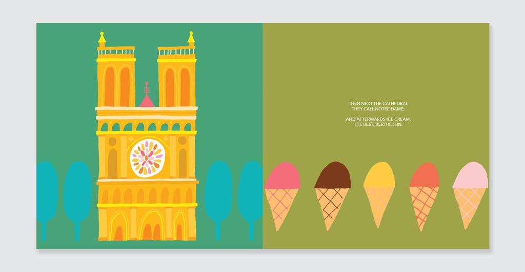 This charming rhyming book is a great introduction to the sights and culture of Paris. The book begins by inviting the reader to come along on the journey and ends with a good night wish: