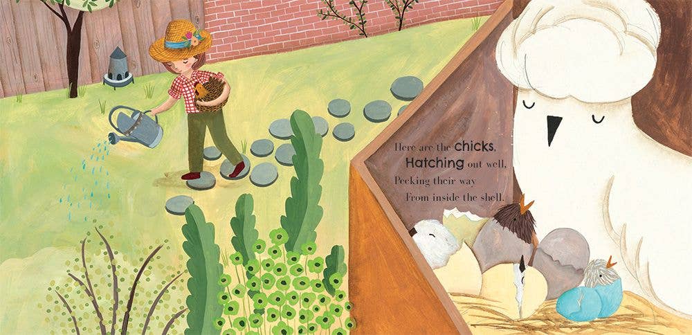 Watch Millie care for her suburban backyard chickens in this playful rhyming story. Then, delve into 7 pages of educational endnotes to learn all about chickens, including anatomy and breeds, and 4 easy egg dishes to try together! A fun way to introduce kids to life sciences and where food comes from.