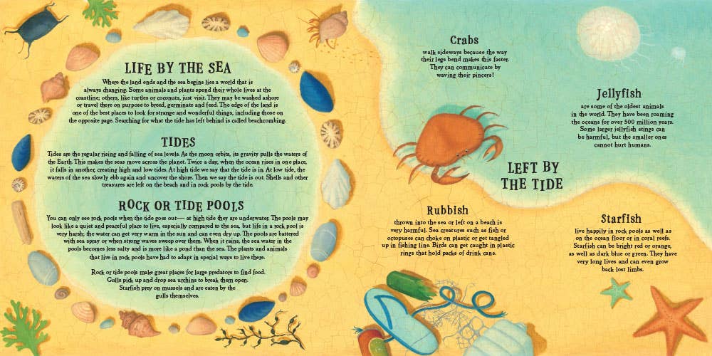 This evocative wordless hardcover book about the mysteries of the sea invites readers to tell the story in their own words, which stimulates the imagination and helps develop visual literacy. Follow Alison Jay's distinctive crackle-varnished artwork as a storm -- and what it brings -- transforms the seashore for a day. Includes endnotes on marine life, lighthouses and the intriguing world of items that wash up on beaches.