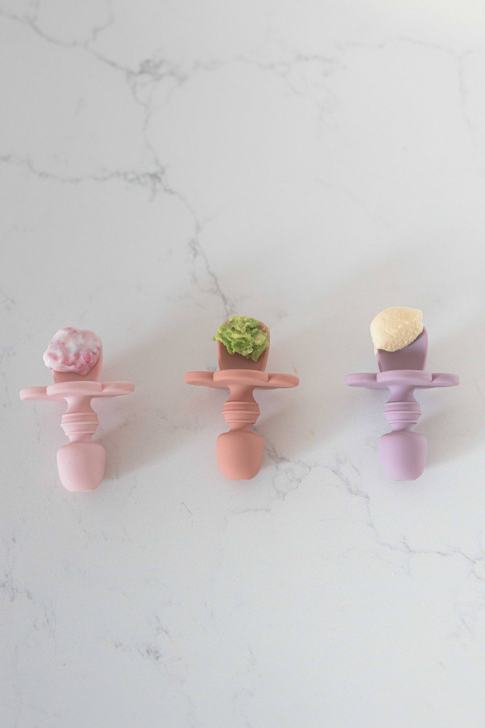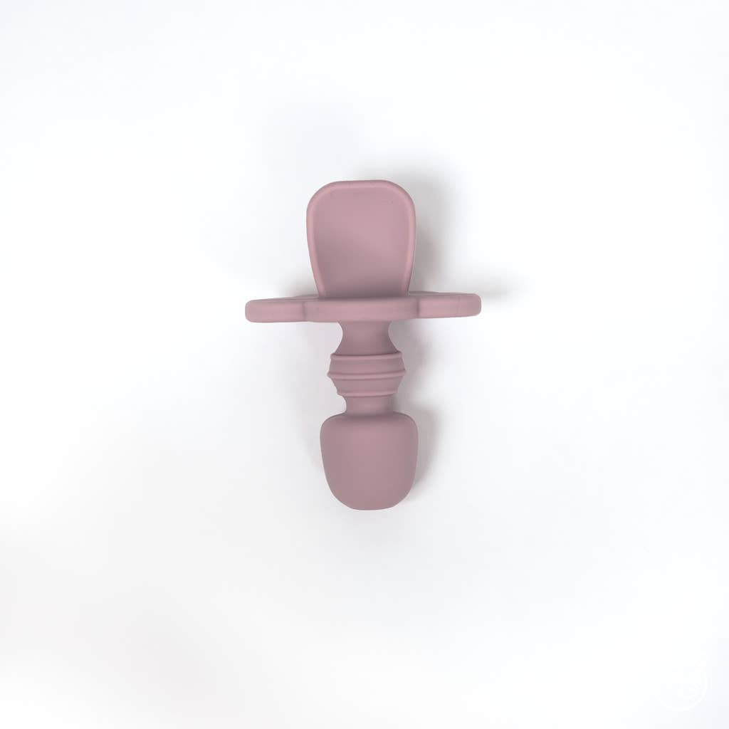 This silicone infant training spoon is soft on baby's gums and new teeth to help create comfort while feeding your lil one. The unique cloud shaped bumper helps teach baby how to use spoon while preventing gagging. This cute little spoon also doubles as a great teether! 100% Food grade silicone -Free from BPA, PVC, Phthalates and toxic metals -Recommended for age 4 Months and Up -Dishwasher Safe.